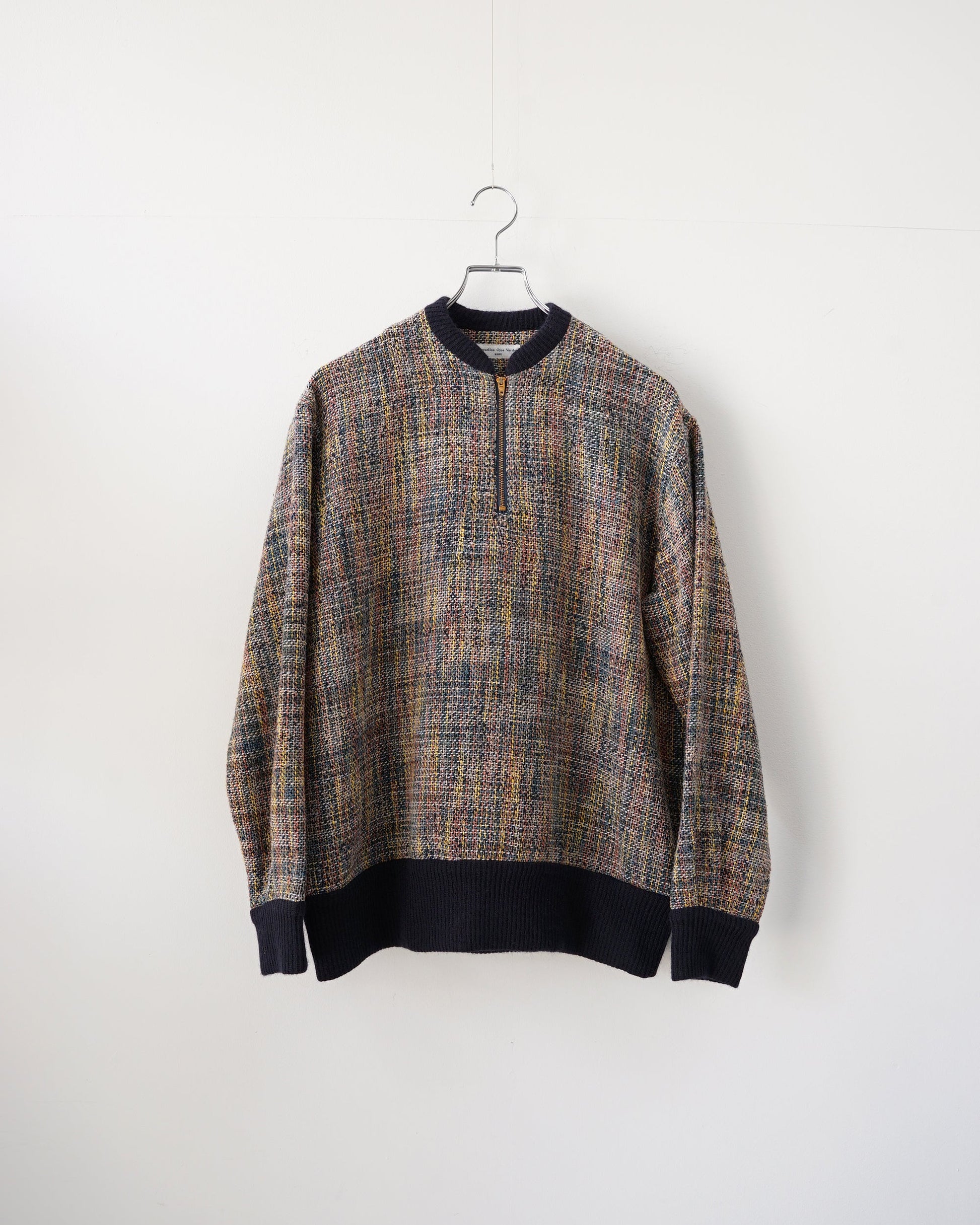 40Sのスポーツシャツからインスピレーションを受け、太番手の糸が手編みのアランセーターのような素朴さもあり、鮮やかな色目から’80Sの洋服のような印象も受ける"Zip-up pullover"です。
