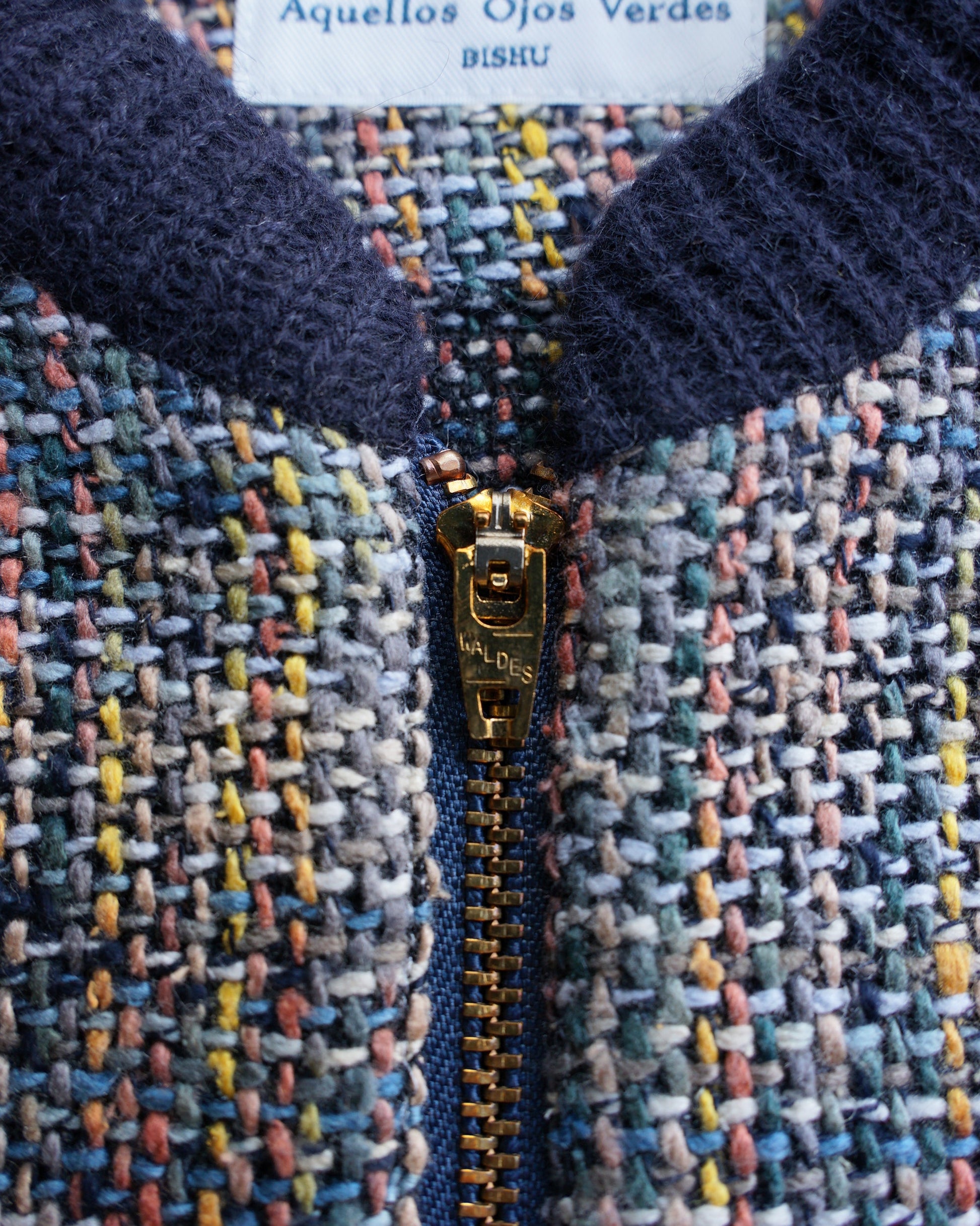 ファスナーはWALDES。1930年代にアメリカで生まれたブランドで三重県名張市の朝日ファスナーが 000年に商標の権利を得て古き良きヴィンテージファスナーを今も作り続けています。 ファスナーの虫部分は丹銅(red brass)で、銅と亜鉛の化合物真鍮の一種ですが亜鉛が少なく限りなく銅に近い真鍮です。