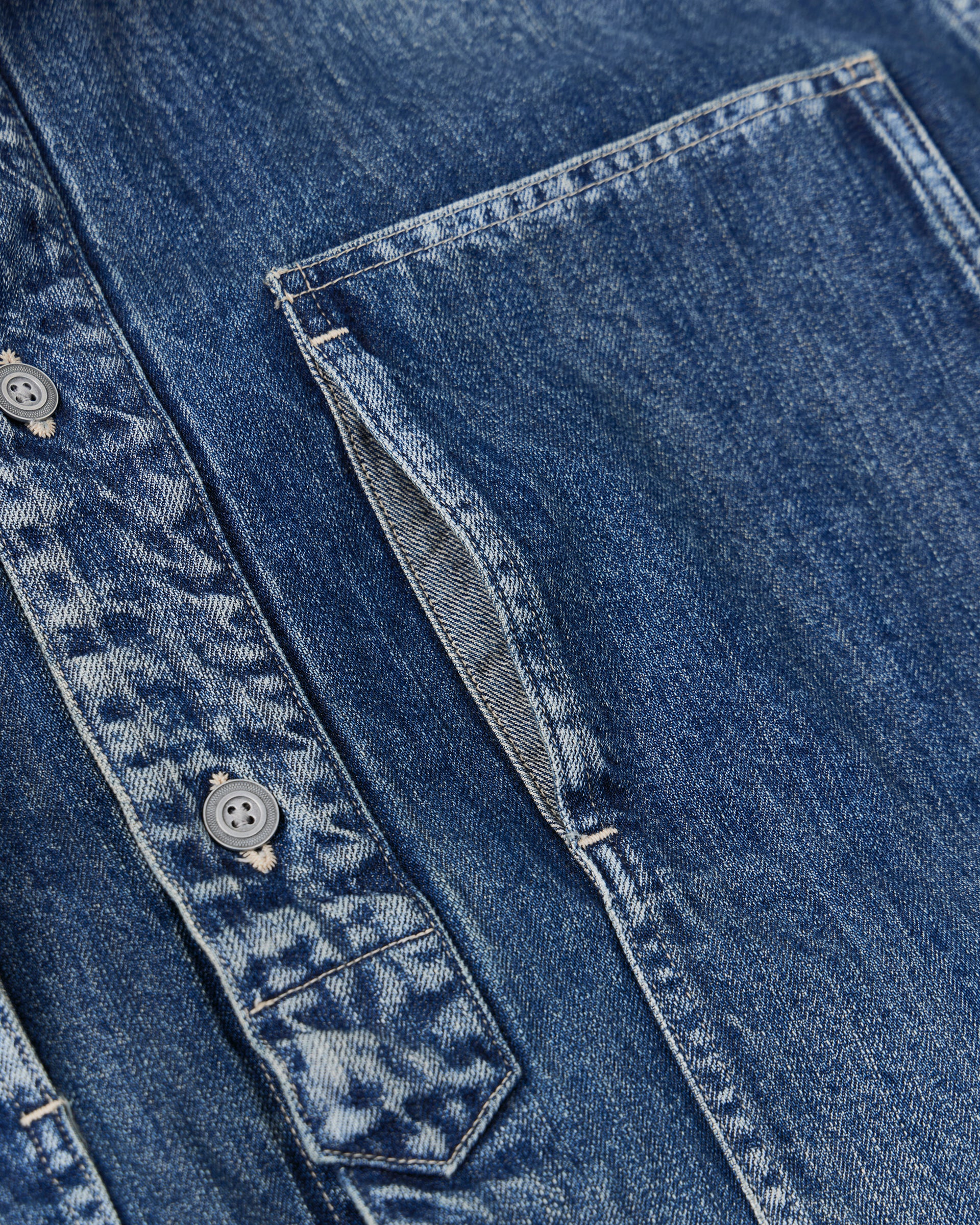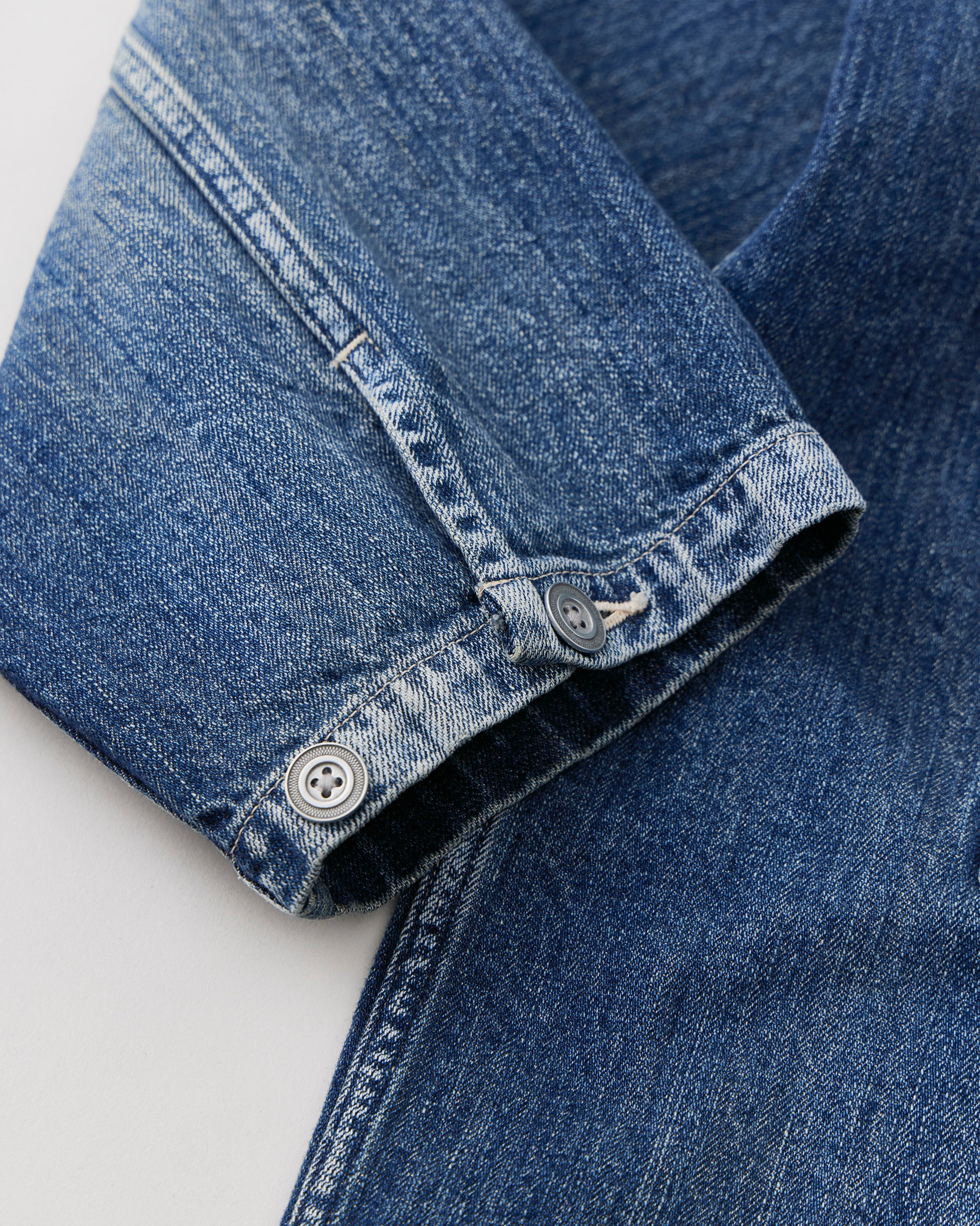 1920〜30年代の米国陸軍のデニムプルオーバーをベースに、ポケット配置や前開き仕様など現代的にアップデートし、ブルゾンのように羽織れるシルエットに仕上げています。