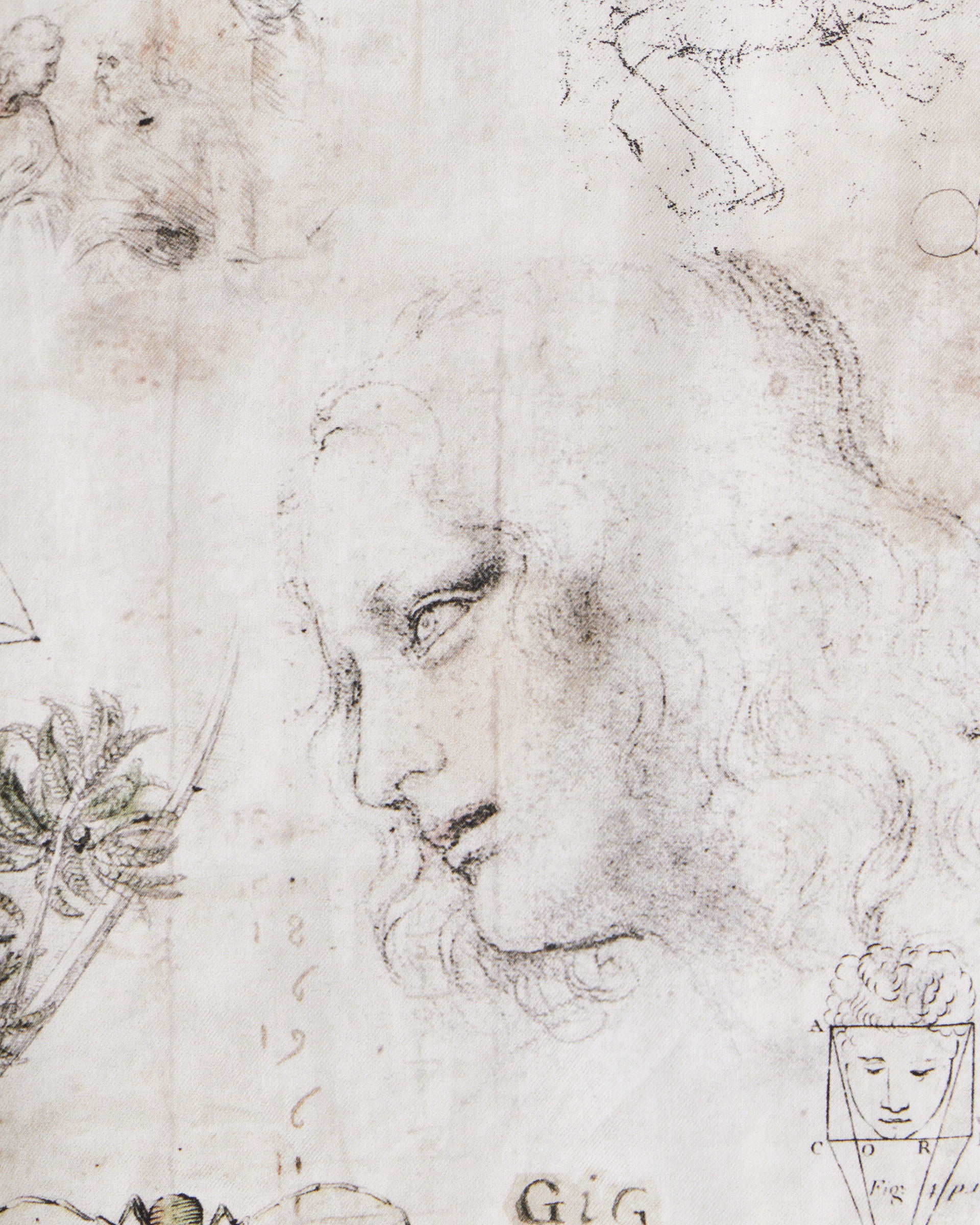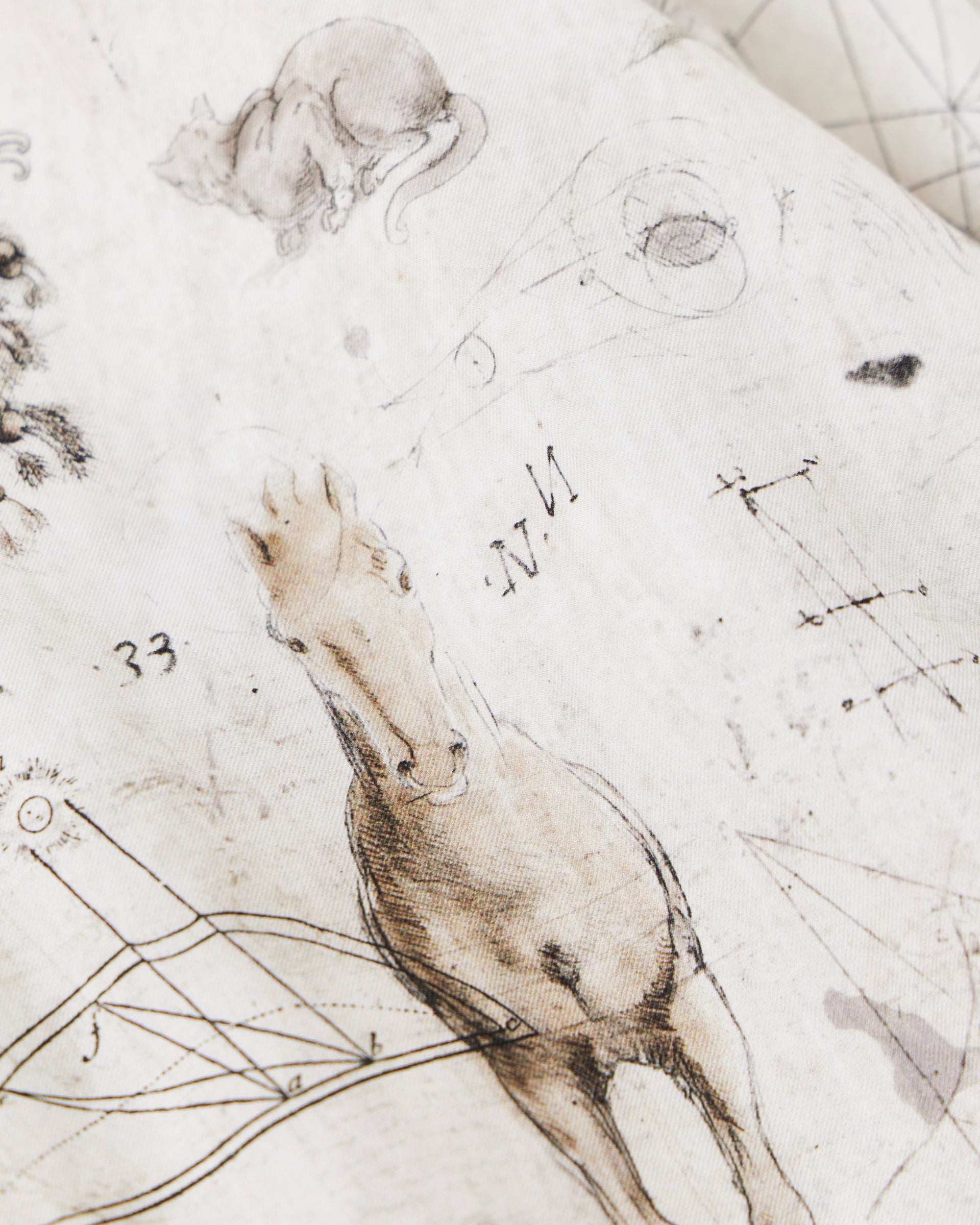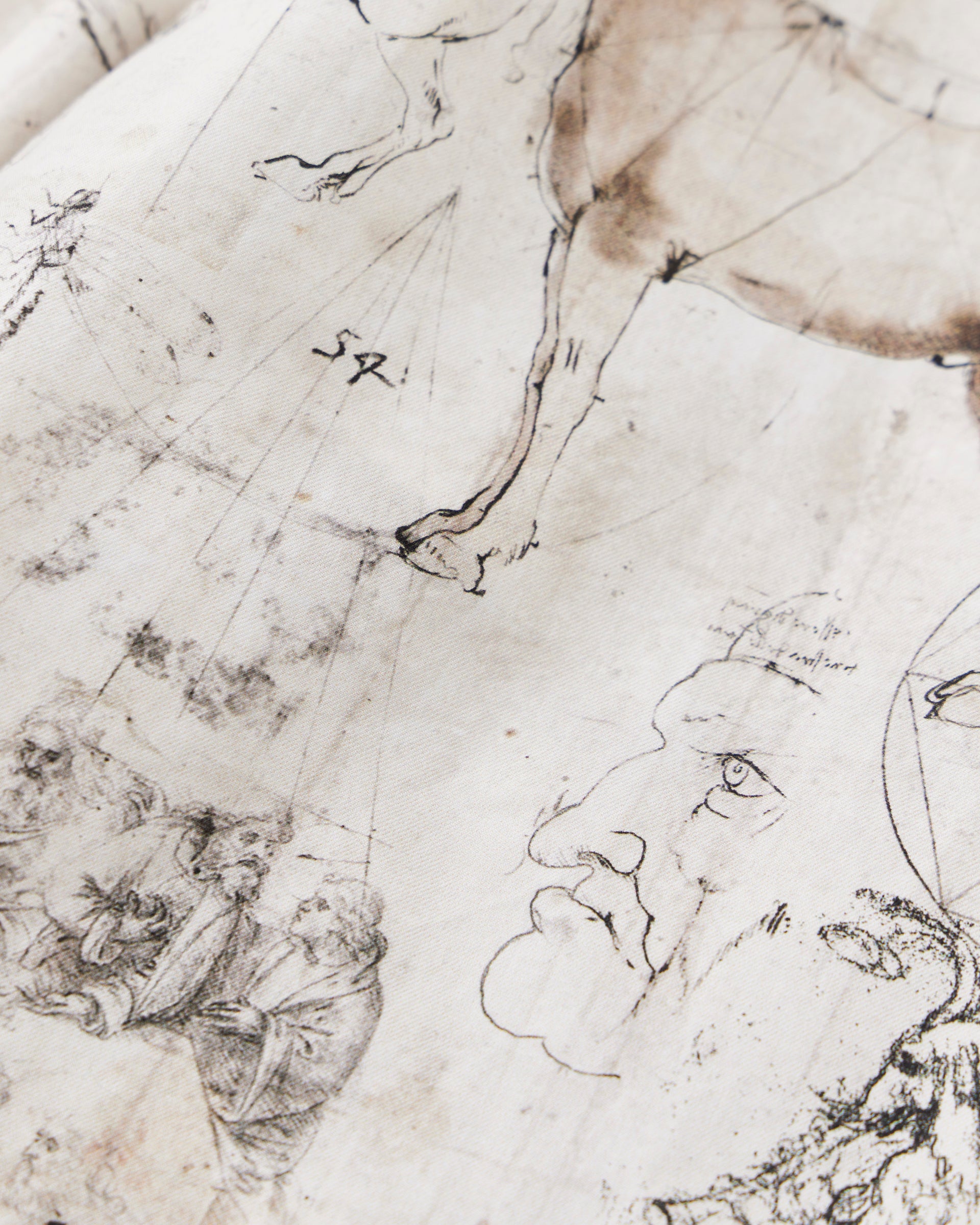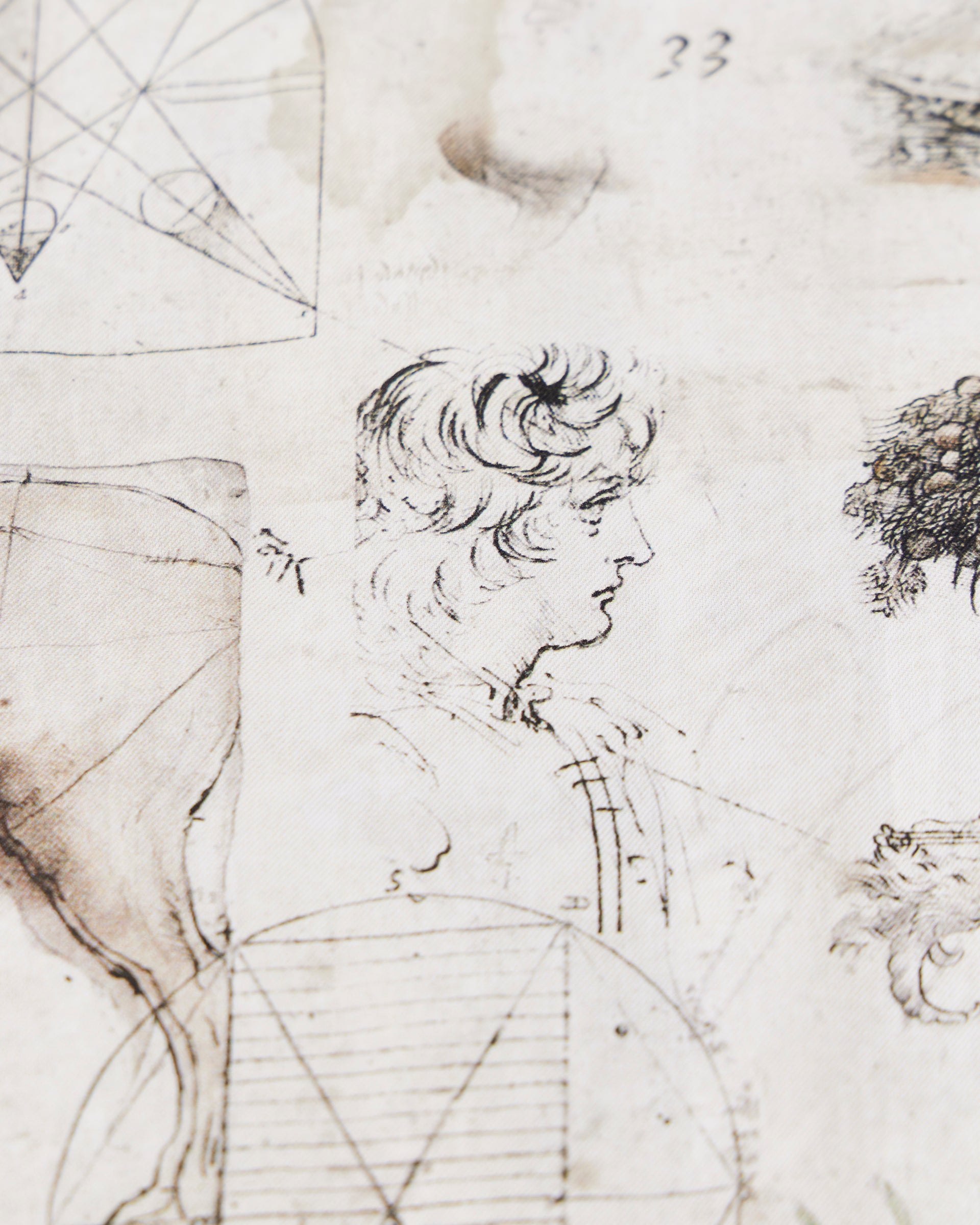 レオナルド・ダ・ヴィンチをインスピレーション源に作成したオリジナル柄をプリントしたビエラ素材のナローカラーシャツジャケット"V.CHAD "です。